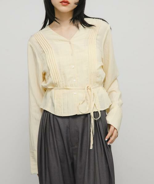 【立体感のあるピンタックレースを使用した女性らしいブラウス】