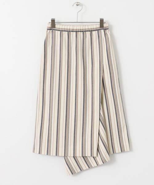 すっきりとしたシルエットを保ちつつ、裾をアシンメトリーに仕上げることで存在感のあるデザインに◎落ち着いた色使いのストライプ柄が、カジュアル過ぎない大人のコーデを完成させてくれるスカート。シンプルなトップスでも十分サマになりますが、春らしいカラーのニットを合わせれば、より旬のスタイルが楽しめますよ。▼お気に入り登録のおすすめ▼お気に入り登録商品は、マイページにて現在の価格情報や在庫状況の確認が可能です。お買い物リストの管理に是非ご利用下さい。