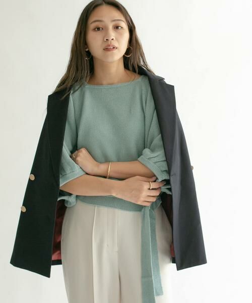 ふんわりとキレイに膨らんだボリュームスリーブがポイント。これからの季節に嬉しい、軽い着心地が魅力的。ハリのある編地で仕上げたからこそ、美しいシルエットで着こなして頂けますよ◎ウエストのリボンはサイドでも後ろでも、お好みの位置で結んでOK。コーデの主役にピッタリな1着です。▼お気に入り登録のおすすめ▼お気に入り登録商品は、マイページにて現在の価格情報や在庫状況の確認が可能です。お買い物リストの管理に是非ご利用下さい。