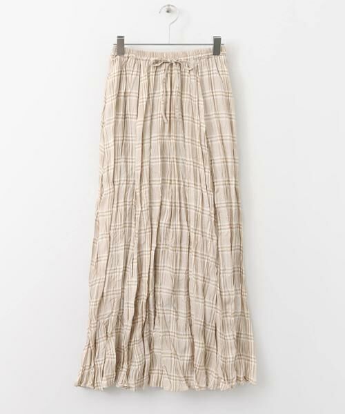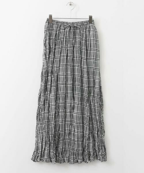 クシュクシュっとシワ加工が施されたロングスカート。サラッと着るだけで洗練されたコーデが叶いますよ。柔らかな風合いや、チェックのカラーリング、しっかりと長さのある着丈は、女性らしさを最大限引き出してくれて◎程よいボリュームがありながらも広がりすぎないシルエットが、大人っぽく見える最大のポイント。