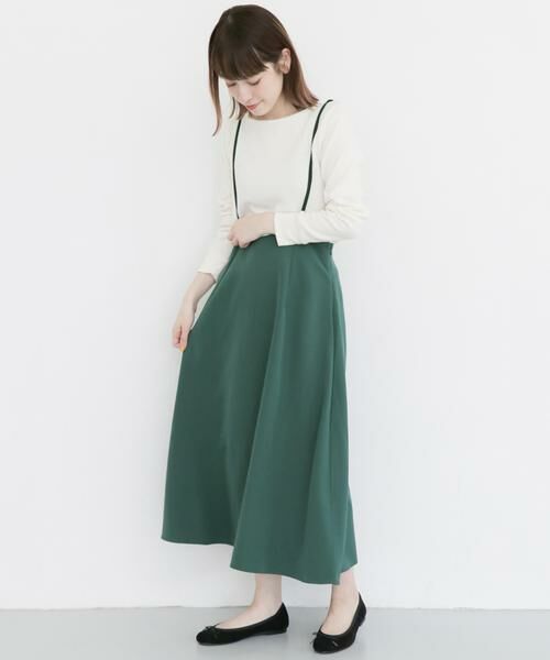 歩く度に揺れる裾が魅力的なフレアスカート。レディな雰囲気漂う華奢な肩紐と、バッククロスがポイント。脚長効果が期待できるハイウエスト仕様や、調節可能なサスペンダーも嬉しいですね。チェックシャツやドットブラウスなど、柄アイテムと好相性。もちろんニットを重ねても可愛いですよ。着回し力が自然と上がるからワードローブに加えておきたいですね♪