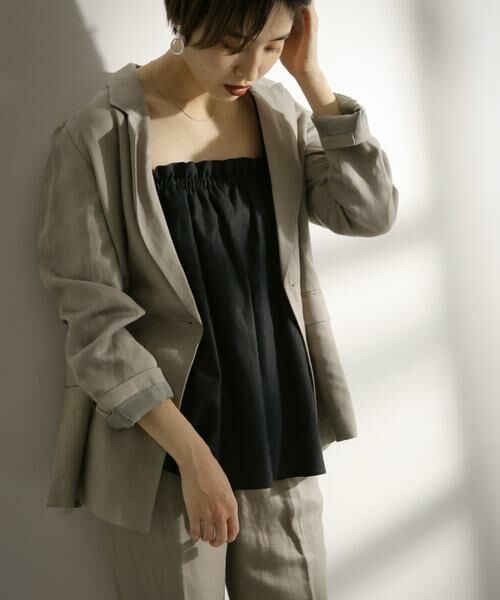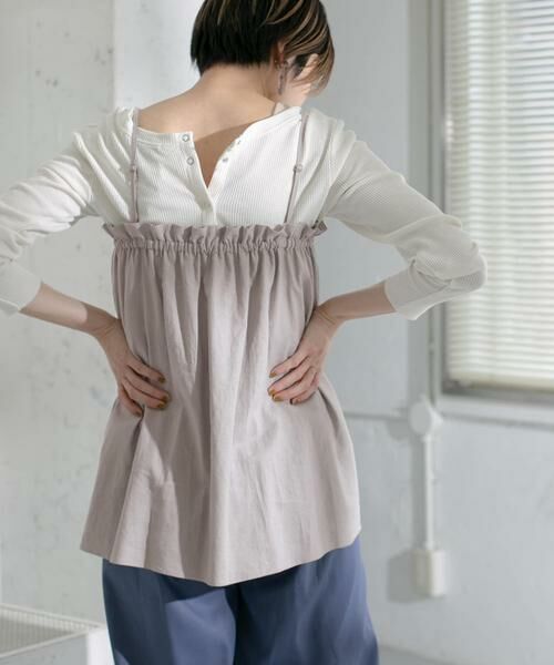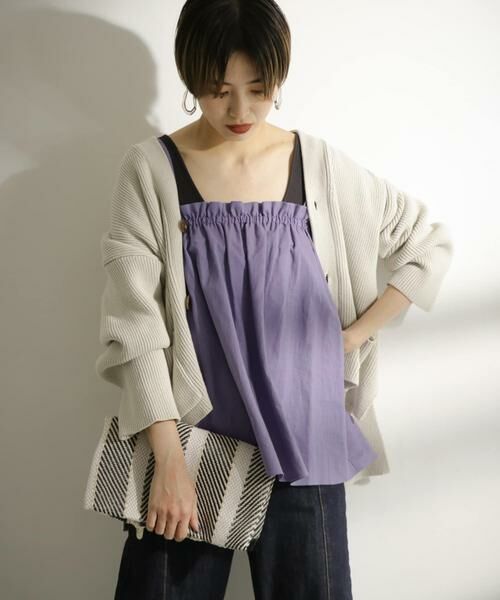 ナチュラルな風合いがこれからの季節にピッタリな麻混素材のキャミソール。たっぷりのギャザーが生み出す絶妙なボリュームと、華奢なストラップのバランスが魅力的ですね。組み合わせるインナーによって表情を変えて楽しめますよ。その時々によってストラップを外しても◎