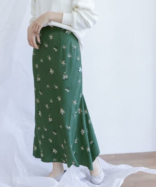 目を惹く色使いの花柄を散りばめた、スタイリングの主役にふさわしいスカート。どこかヴィンテージのような雰囲気を醸し出すデザインが◎すっきり見えするマーメイドシルエットと、動く度にひらひらと揺れるバイアス仕立ても見逃せませんね。ベーシックなトップスはもちろん、ざっくりとしたカーディガンやスウェットを合わせたメリハリのある着こなしもオススメ。