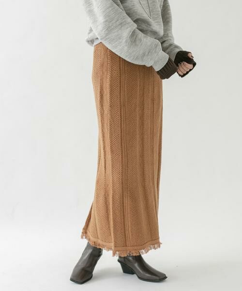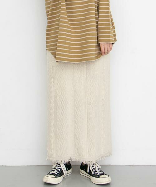 裾のフリンジでアクセントを効かせたニットタイトスカート。表面感のある編地で仕上げた、着膨れして見えないデザインがポイントです。チクチクとしない素材で着心地が良いのも嬉しいですね。オーバーサイズのアウターやトップスを合わせたメリハリのあるスタイリングがおすすめ。柔らかい印象を与えるカラーリングにも注目です。※伸縮性あり※この商品には、フリンジ(飾り)を使用しています。着用やクリーニングを繰り返すことにより、フリンジが乱れることがあります。▼お気に入り登録のおすすめ▼お気に入り登録商品は、マイページにて現在の価格情報や在庫状況の確認が可能です。お買い物リストの管理に是非ご利用下さい。