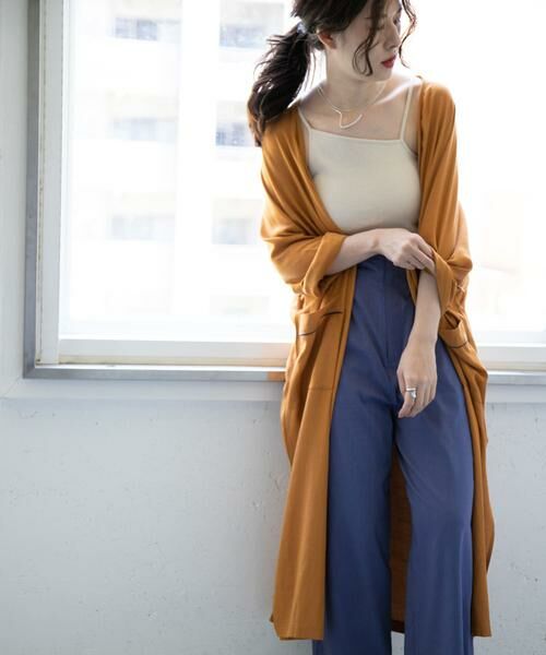 配色のカラーパイピングでアクセントを効かせたガウン。程良く落ち感のある素材を使用することで女性らしさを演出。付属のベルトで前を締めてワンピース風に着るのもおすすめです。大人っぽさを引き上げる3色をご用意しました。