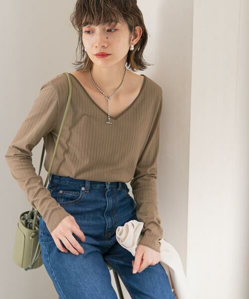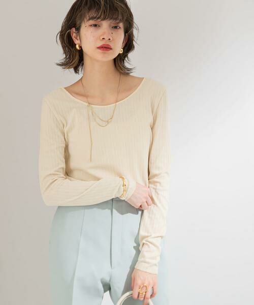 ジャケットやアウターのインナーに最適なサイズ感。タイトなシルエットなのでワイドパンツや落ち感のあるボトムを合わせると大人っぽく仕上がります。
