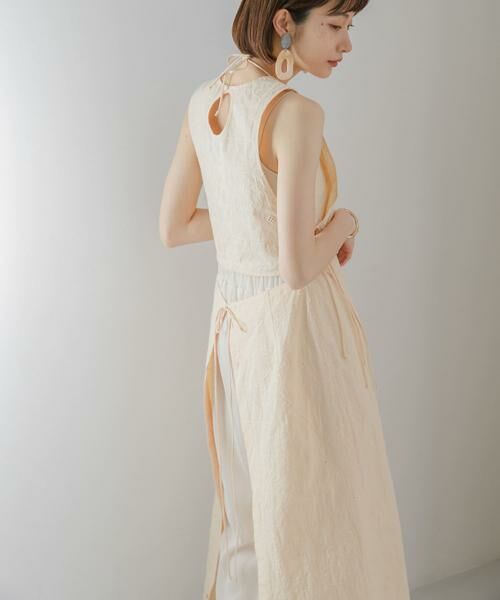 アイヌ柄からインスピレーションを受けて作り出したKBFオリジナル柄の刺繍ベスト。高密度コットンに刺繍を施すことで立体感が出るようにしています。両サイドのリボンでサイズ調節が可能なので、きゅっと絞ってウエストラインをくっきり見せるとスタイルアップも期待できて◎ワンピースやカットソー、様々なアイテムにレイヤードして楽しんでいただきたいです。