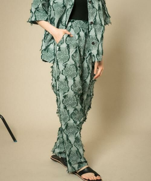 ボタニカル柄&バイカラーのカットジャガード素材が存在感を高めるワイドパンツが登場。さっぱりと着ていただける麻混素材で夏らしさをさらに高めます。ラクに穿いていただけるバックゴム仕様&ゆったり見えすぎないフロントのタックが嬉しいポイントです。