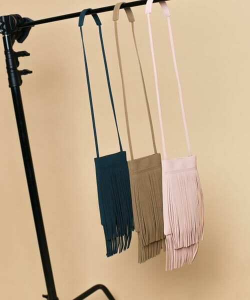 たっぷりのフリンジが目を惹くショルダーバッグ。斜め掛けでも物を取り出しやすい程よいショルダーの丈感が嬉しいポイント。スウェードの生地が大人な印象をプラスします。内側にポケットが付いているので見た目よりも収納力があって◎