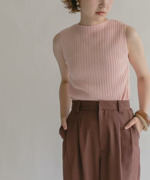 程良く身体にフィットする、ベーシックなシルエットが魅力的な大人顔タンクトップ。涼しげなシャリみのある素材を使用しているのでこれからの季節にぴったり◎普段使いはもちろん、お仕事着のインナーとしても活躍してくれるアイテムです。