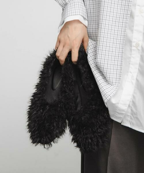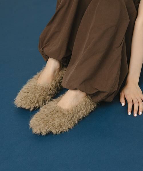 毛足の長いファー素材を使用したラウンドシューズ。毛足が地面に付かないよう、少しヒールを付けました。全体的に柔らかく仕上げているので履きやすさにこだわりました。ベーシックコーデに映える1足です。