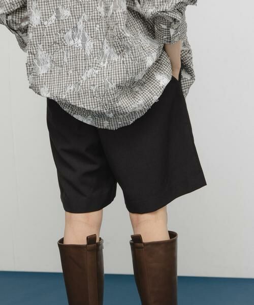 様々なトップスに合わせやすい、ベーシックなショートパンツが登場。縦に入った切り替えは脚をきれいに見せ、腰回りをすっきりと見せつつ、後ろゴム仕様でストレスフリーな穿き心地も期待できます。1本持っておくと重宝します。