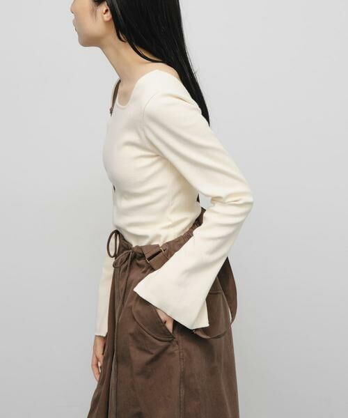 デコルテ見せとバックオープン仕様が大人のこなれ感を演出するトップス。優しくフィットするサイジングが華奢な印象を与え、ちょうどいいヘルシーな肌見せも叶います。カップ付きで1枚で着てもサマになり、様々なボトムと合わせやすいです。