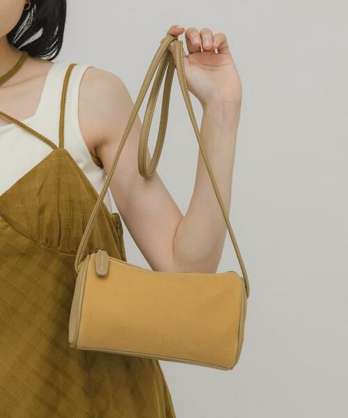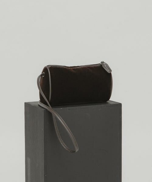 開口部と引手のステッチデザインがポイントのショルダーミニBAG。シーズンムードを盛り上げるベロア素材を使用しました。ショルダーは中でくくって長さ調整が可能です。どんなスタイリングにも合わせやすいデザインにしております。