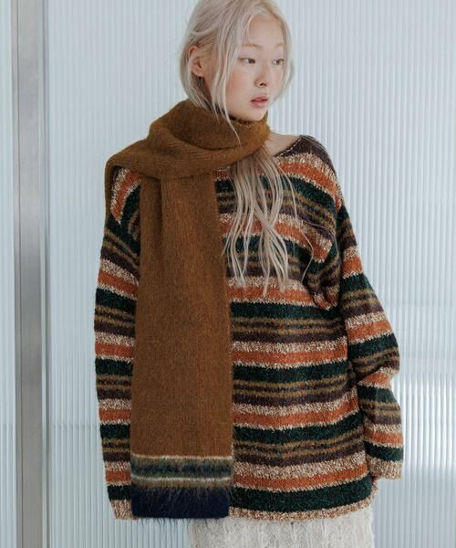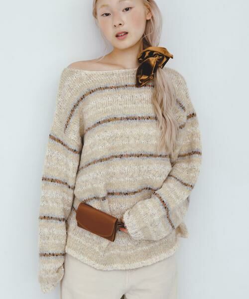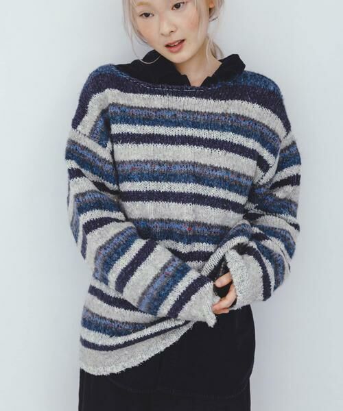 3種類の糸を組み合わせたキャッチーなニットが登場。全体的にゆったりとしたサイズ感に仕上げつつ、首回りは少し広めに設定することで抜け感をプラスしました。華やかさ満載のBLUEとBROWN、取り入れやすいIVORYをご用意しております。カジュアルなデニムから、マニッシュなボトム、ショートパンツまで幅広いアイテムと合わせていただけます。