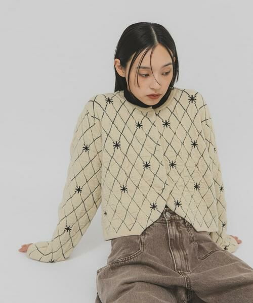 軽アウターのような感覚で羽織れるニットカーディガンが登場。キルティング編みが特徴的で、重厚感もありつつ存在感を放つデザインに仕上げました。少し裾に丸みが出るようなシルエットや、丁度いい着丈もポイントです。甘さのあるアイテムなので、メンズライクなボトムと相性抜群です。