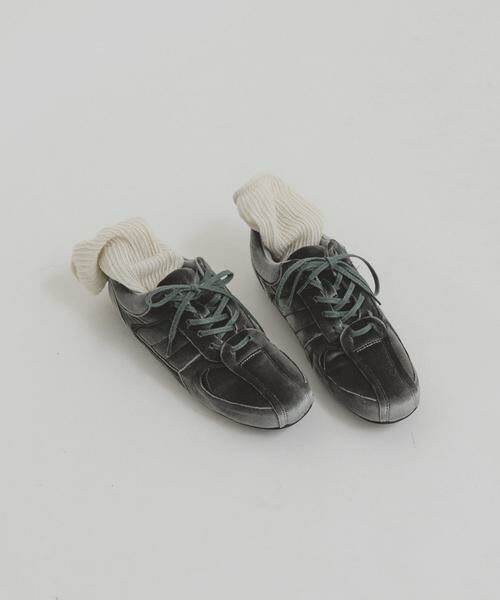 いつものスタイリングに取り入れるだけでトレンドライクな着こなしが叶うスニーカー。ベルベット素材を使用しており、シューレースは冬らしいモールと細い紐にしました。部分的に毛並みをテレコにして濃淡を出したデザインもポイントです。