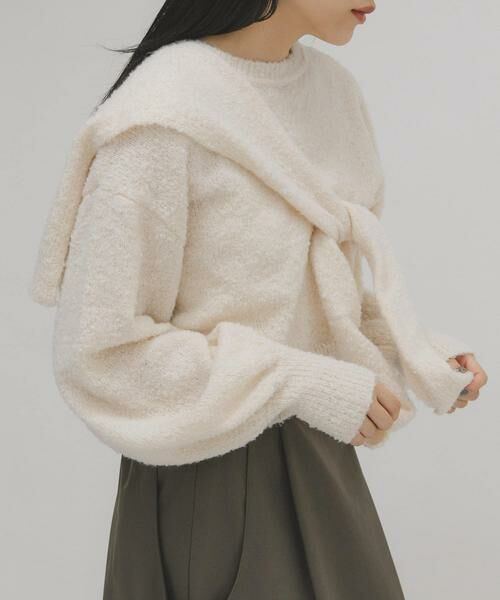 【シーズンムードを高めるブークレー素材を使用したデザインニット】