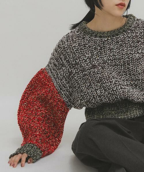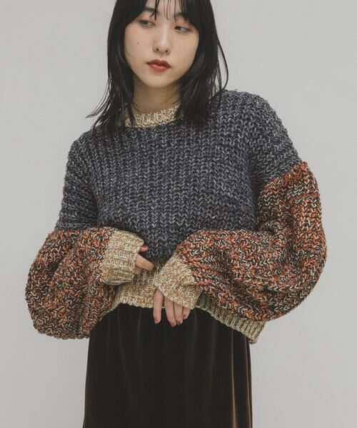 マルチカラーデザインが存在感を放つ主役級ニット。身頃は程よくコンパクトに仕上げ、お袖のコロンとしたフォルムが印象的です。1色ずつ色を組み合わせているので、唯一無二のカラーが特別感を叶えます。カジュアルなデニムからきれいめなボトムまで幅広く合わせていただけます。