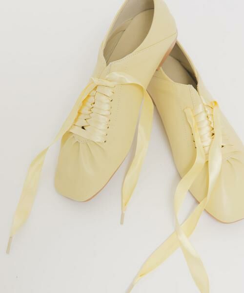 サテンリボンが付いたフラットシューズが登場。KBFのSSテーマROMANTICを表現した1足に仕上げました。踵は踏める仕様になったデザインもポイントです。女性らしい柔らかな印象とクラシカルさを表現してくれるおすすめアイテムです。