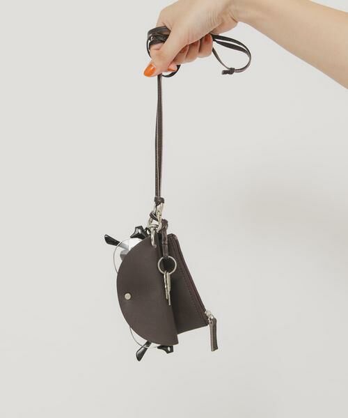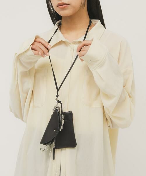 本革を使用したマルチポーチショルダーが登場。眼鏡ホルダー、ポケット付きのポーチ、キーチャームの3点がセットになったアイテムです。ショルダー紐は首からかけたり斜め掛けにできる長さまで調整可能です。また、すべて取り外し可能なカラビナが付いており、別でも使用いただけます。スタイリングのアクセントにぴったりです。