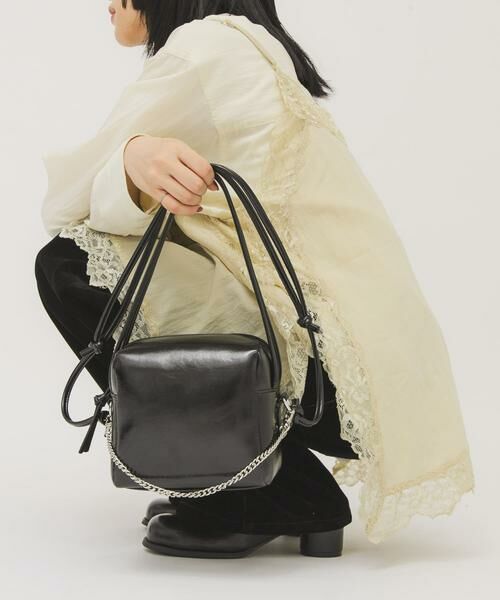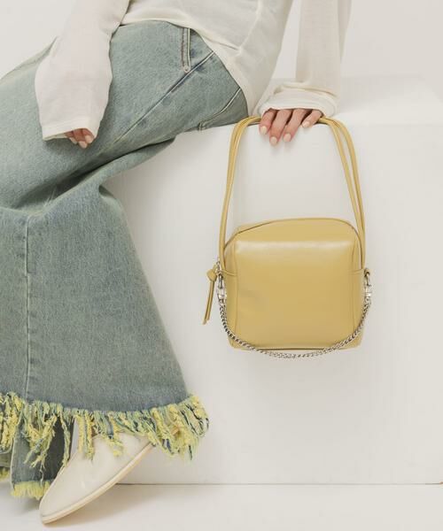 コロンとしたフォルムが可愛い、取り外し可能な飾りチェーンが付いたスクエアBAG。側面に付いた華奢で程よく長めのハンドルや、調整可能なショルダー紐もポイントになっています。普段使いはもちろん、オケージョンシーンにもぴったりです。