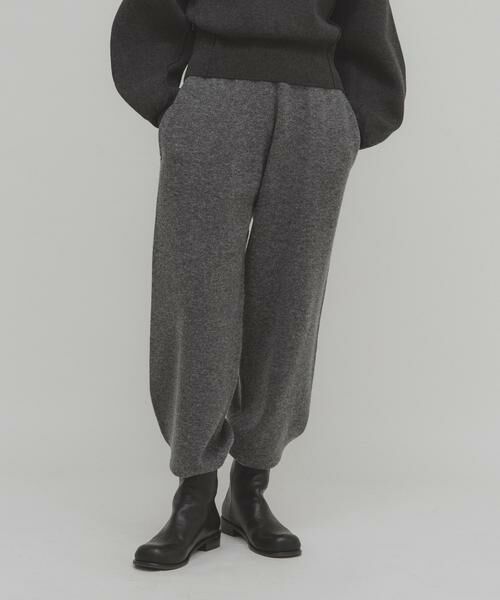 程よく厚みのあるニット素材のパンツが登場。ウエストはオールゴム仕様になっているので、リラクシーな穿き心地が叶います。フラットな編地で、裾のリブデザインもポイントです。着ていただくと足の甲に溜まるルーズなシルエットにも注目してみてください。
