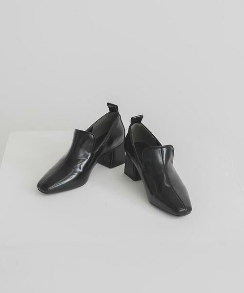 【モードな印象に仕上げたセミスクエアトゥパンプス】