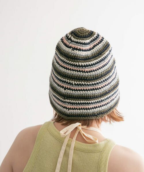 オリジナルのマルチボーダー柄が魅力の、手編みで作られたニットHAT。シンプルなスタイリングにプラスするだけで、こなれ感のある旬な着こなしになります。