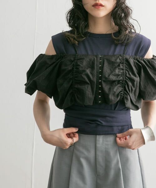 ボリュームのあるボトムを合わせてもウエストをきゅっと結べるのでメリハリのあるスタイリングが叶います。