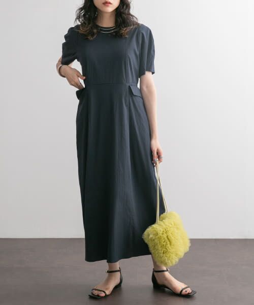 ウエストのBIGポケットが目を惹く美シルエットワンピース。表面感のある素材は夏にぴったり。立体的で丸みのある袖は華奢見えが叶い、高めに設定されたウエスト位置はスタイルアップ効果が◎身長別に選べる2サイズ展開にも注目です。