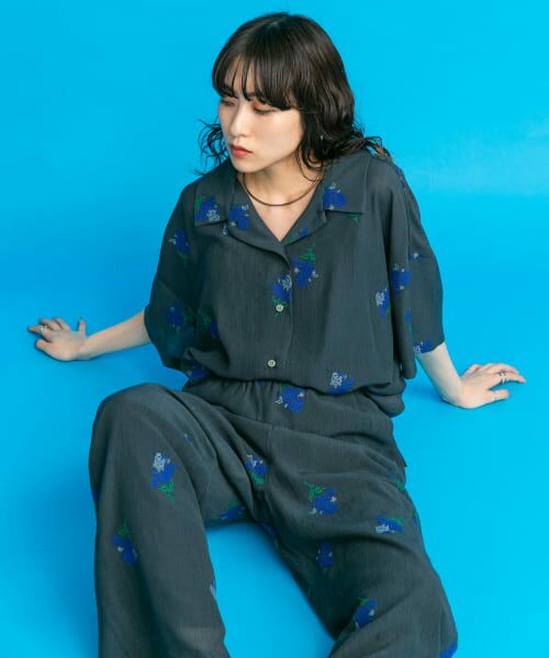 同柄のエンブロイダリーイージーパンツ(KB45-24F430)と合わせたセットアップスタイルもおすすめ。シンプルなボトムと合わせるだけでこなれた着こなしが叶う主役級シャツです。