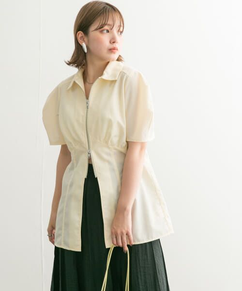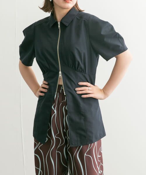 フロントZIPデザインが特徴的なデザインシャツが登場。胸下の切替仕様や立体的な袖はフェミニンさをプラスします。ウエストは程良くシェイプされているので自然とスタイルアップも可能。プラスワンアイテムとしておすすめです。