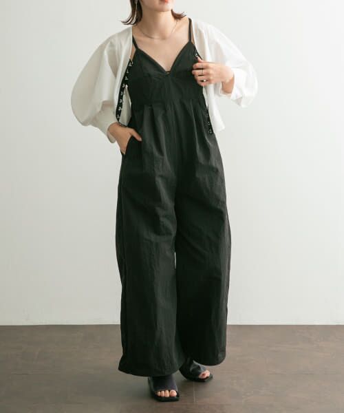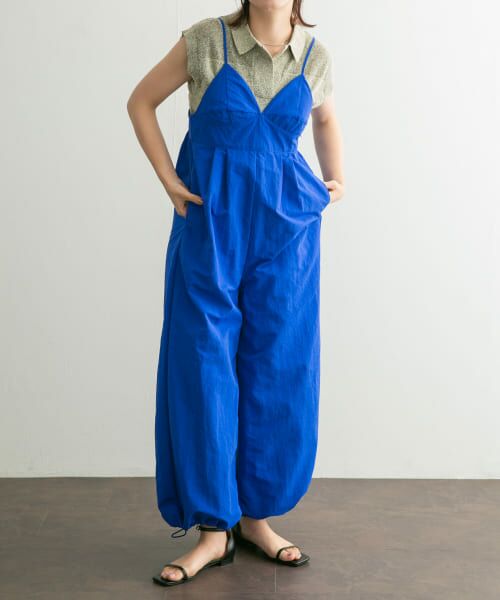トレンドのビスチェディテールをサロペットに取り入れた1着。胸元はすっきりとしつつも腰回りはゆったりとしたサイズ感で、快適な着心地が叶います。また、ワンピースのように見えるワイドレングスや裾のドローコード仕様、調整可能なストラップもポイント。大人カジュアルに決まるアイテムです。