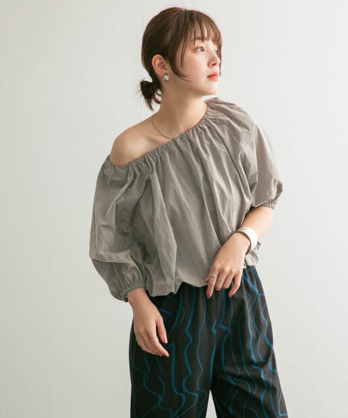 ベーシックなブラウスと襟パーツがセットになったマルチWAYアイテム。ブラウスの襟ぐりはゴムになっているのでオフショルダーにも変化します。また、付属の襟を付けたスタイルや、腰に巻いたラップスカートのようなスタイルも可能。何通りもの着こなしを楽しめる1着です。