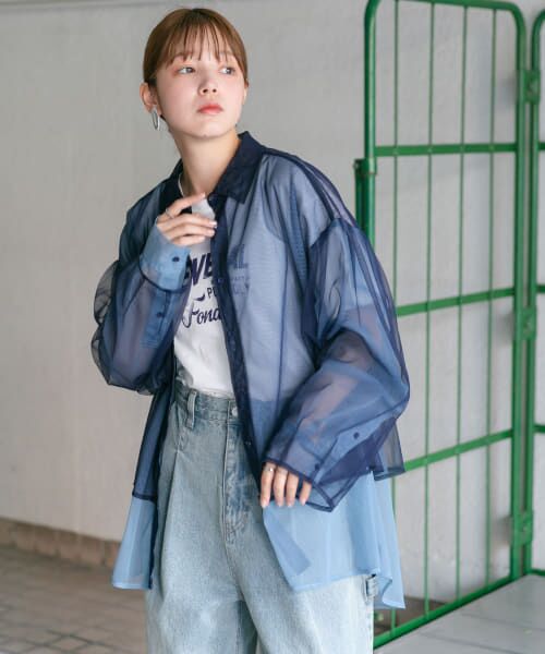 タンクトップやキャミソールの上から羽織るだけで着映えします。ロゴTEE×デニムのカジュアルスタイルにプラスするだけで旬な着こなしに仕上がります。