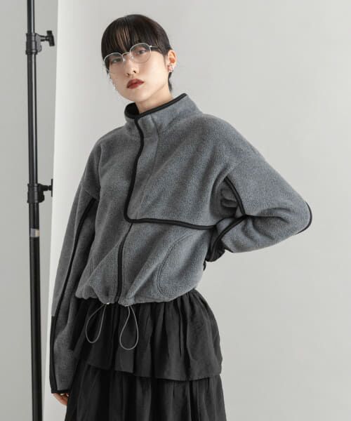 柔らかく肌触りの良いフリース素材を使用したトップス。配色のパイピングがアクセントとなり、袖は肘当てのディテールを落とし込み、バックスタイルも切替を施すことで細部までこだわりました。裾にコードが付いているので気分によって絞っていただけます。コンパクトな着丈はワイドパンツと相性抜群です。