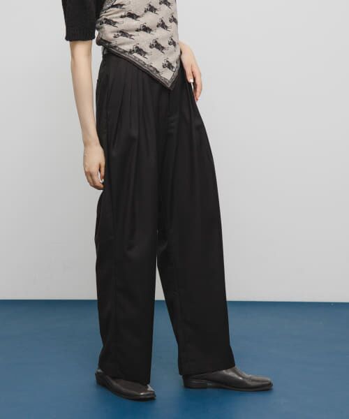 【フロントのタックデザインがアクセントになったスラックス】