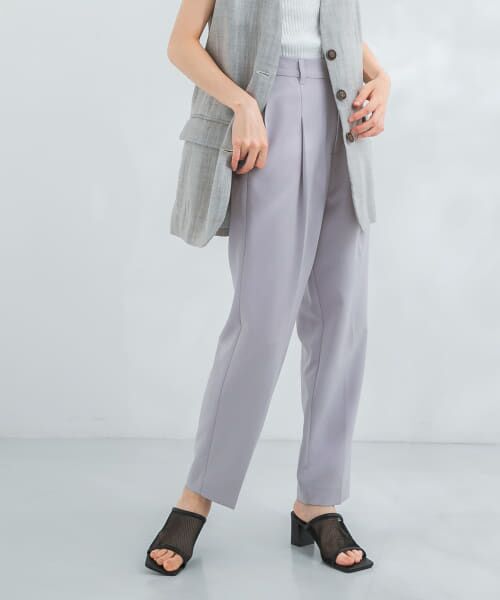 定番アイテムとして重宝するテーパードパンツ。センタープレスとタックで美脚効果も期待できます。ストレッチが効いた素材を使っているので穿き心地抜群なのも嬉しいポイントです。