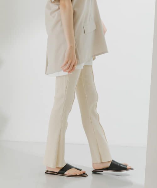 【脚長効果抜群!トレンド感のあるリブフレアパンツ】