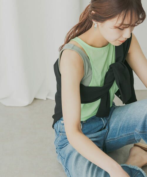 リブ&シアータンクがセットになった今年らしいアイテム。一緒に着ていただくとアシンメトリーなラインが際立って◎もちろん別々でもお使いいただけます。ジャケットやシャツのインナーにもおすすめです。