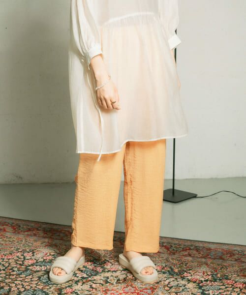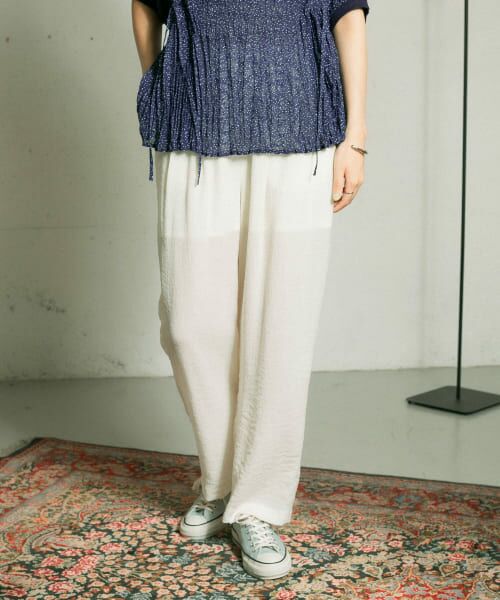 スタイリングに軽やかさを与える、楊柳素材で仕上げたイージーパンツ。とても柔らかい穿き心地で暑い時期でも快適に過ごせます。程良い透け感がさらに涼しげな印象にしてくれて◎夏らしいカラー展開にも注目してみて。