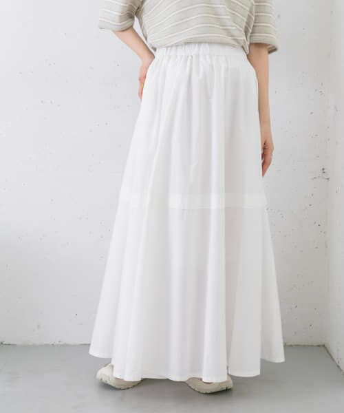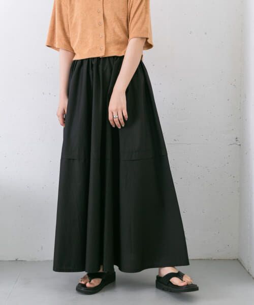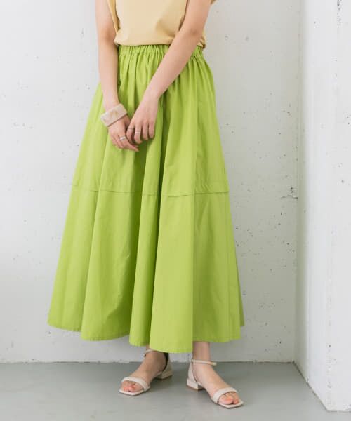 シンプルなTシャツやブラウスと合わせるだけでスタイリングが完成します。タックインするとよりスカートのボリュームが際立つのでおすすめです。