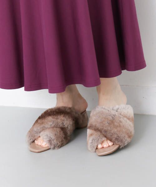 これからのシーズンに欠かせない、ふわふわのファーが魅力的なサンダル。歩きやすいローヒールが◎素足はもちろん、靴下と合わせても可愛いですよ♪