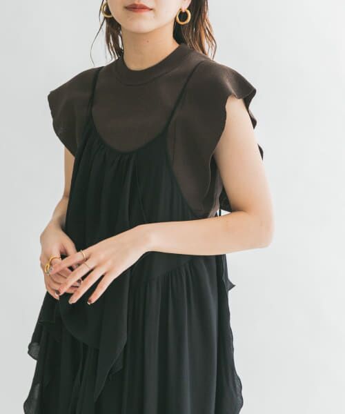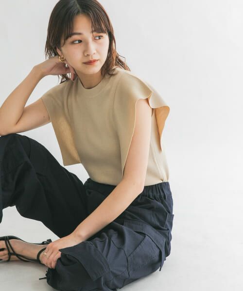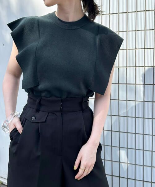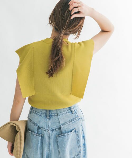 ご好評いただいているニットが新色を追加し、再登場しました。コンパクトでどんなボトムにも合わせやすいポイント力の高さが魅力。程よいフレアスリーブは二の腕を隠してくれるのでノースリーブに抵抗がある方も着ていただきやすいアイテムです。さらっとした着心地の良い素材感にも注目です。
