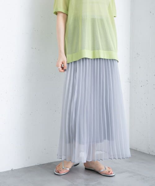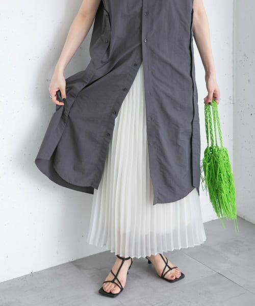 光沢感のある素材で仕上げたプリーツスカート。シンプルになりがちな夏のスタイリングに映える1着です。まとまりの良いシルエットなのでワンピースとのレイヤードにもぴったり。合わせやすいベーシックな3色展開にも注目です。