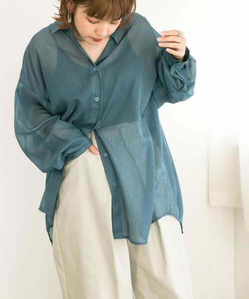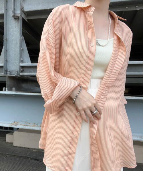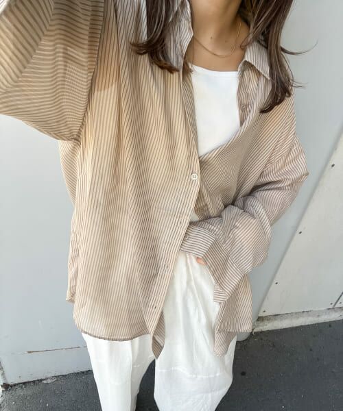 【透け感のあるストライプ柄で存在感を高めた万能シャツ】