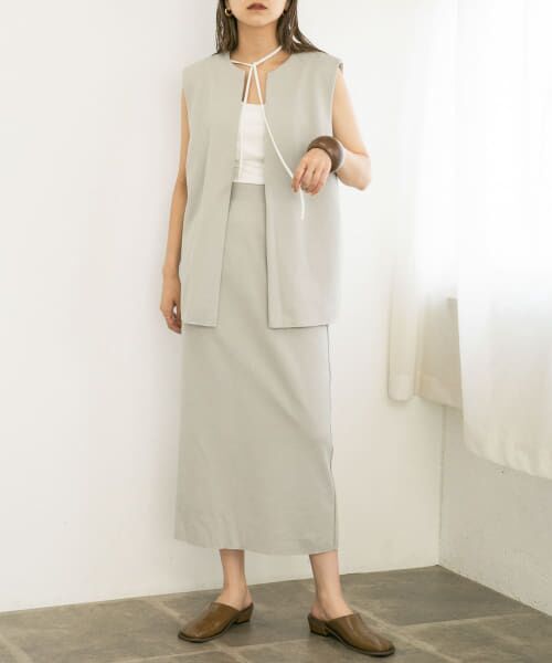 同素材のミニブークレノーカラーベスト(KB36-27J170)とのセットアップはもちろん、ワイドトップスを合わせてスカートのシルエットを引き立たせても◎着回しやすいアイボリーとベージュの2色展開もおすすめポイントです。