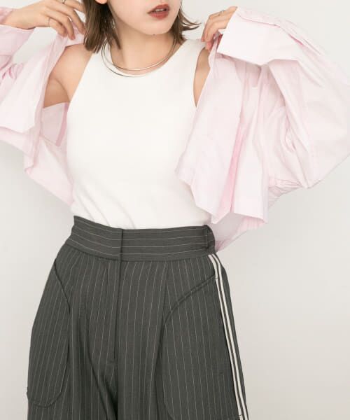 ヘルシーな肌見せが叶うアメスリディテールのタンクトップ。カップ付きなのでインナーを気にすることなく着ていただけます。伸縮性のある素材を採用しているので着心地も抜群です!首回りが開いたトップスと好相性。お色違いでお持ちいただくのもおすすめです◎