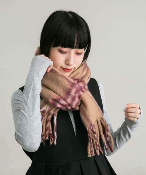 【大人っぽい色使いが魅力のチェック柄ストール】
